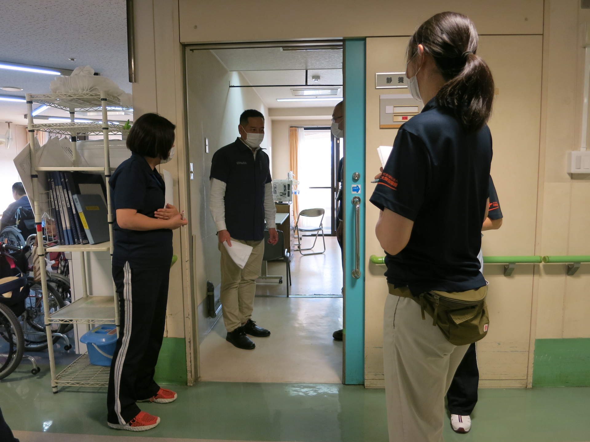 11月中旬に訪問した都内の施設では、隔離予定のお部屋周りのゾーニング案と感染対策マニュアルをもとに動線を検討し、疑い患者が発生した場合を想定して、改善点を助言しました。