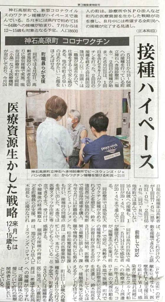 5月中旬から7月下旬まで、神石高原町立 神石へき地診療所にてワクチン接種に携わっていました。