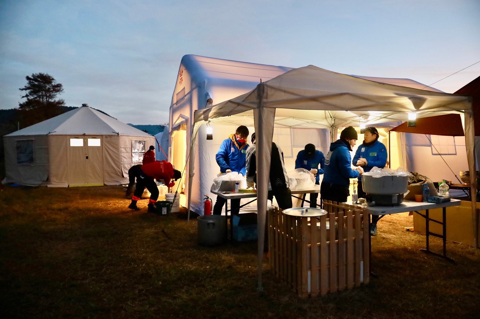 参加者の食事は、前回訓練に引き続き、災害時緊急支援プラットフォームPEADの皆様の炊き出しにより提供されました。