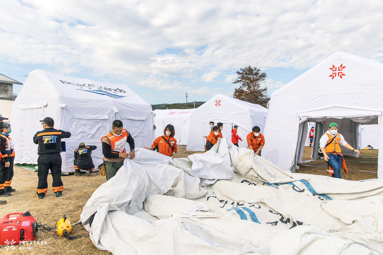 多機関合同訓練は、ジョンソン・エンド・ジョンソン日本法人グループJAPAN COMMUNITY IMPACT様のご協力のもと空飛ぶ捜索医療団が開催するもので、大規模災害時に様々な組織が連携して医療支援や捜索救助などを展開することを目的としています。