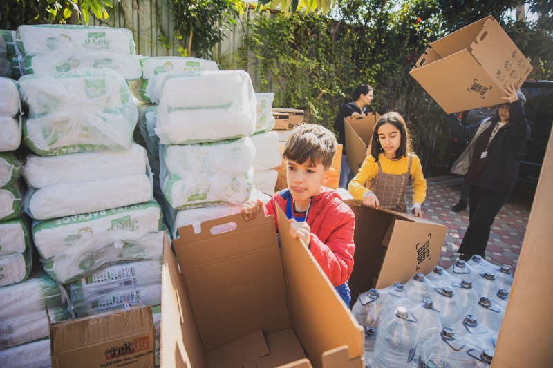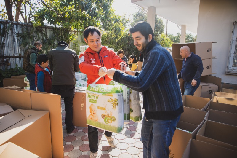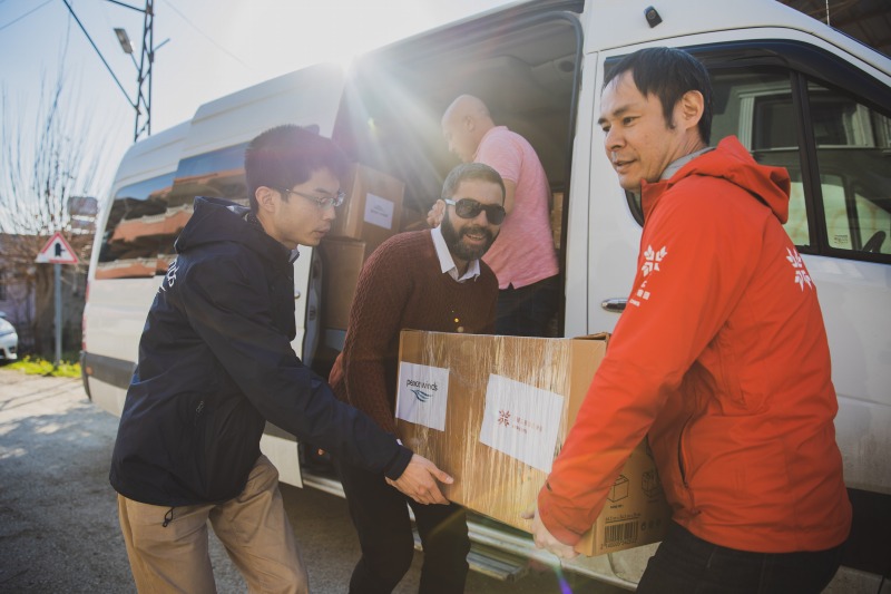 段ボールを組み立てたり、ゴミを回収したり、ロゴのシール貼りを手伝ってくれたのはセマナズちゃん9歳。「将来はお医者さんになりたい」という賢い彼女も、地震のニュースを見て怖くなったそう。「手伝ってくれてありがとう」と感謝を告げると「こんなのなんでもないわ!」と言って次の箱を作り始めました。