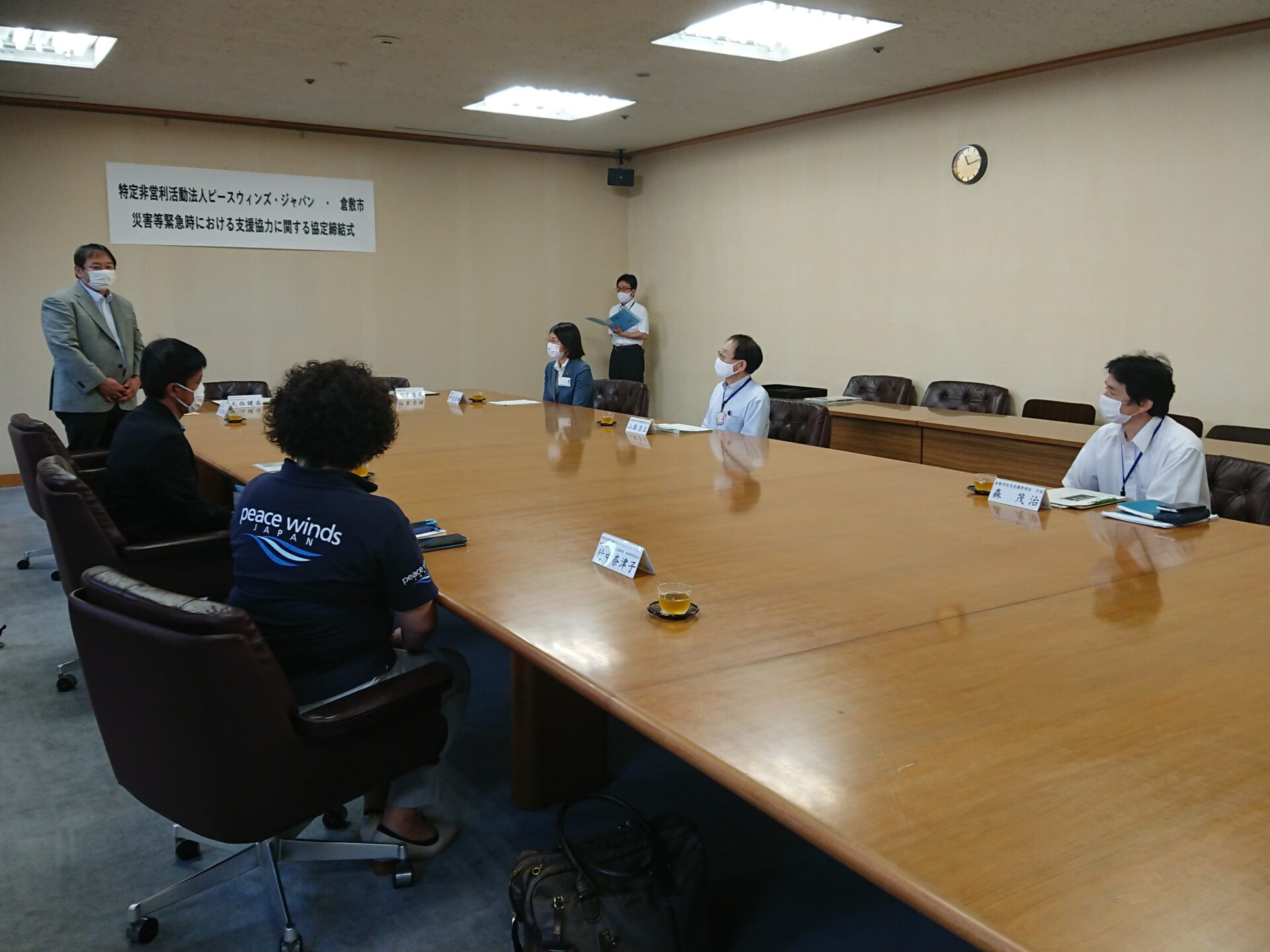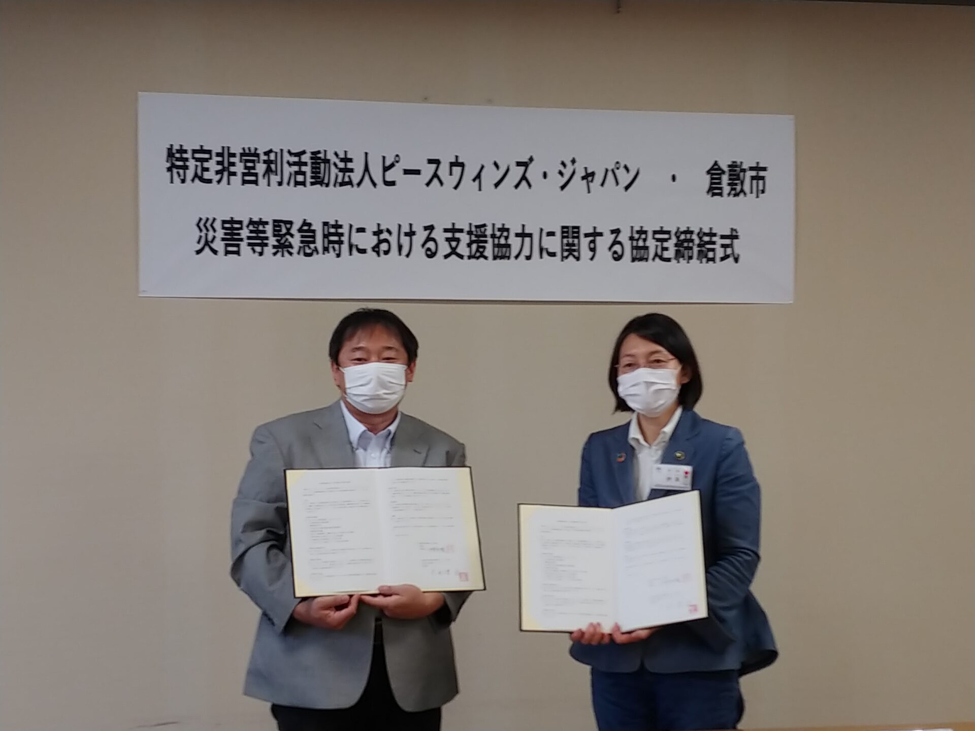 岡山県倉敷市(伊東香織市長)と特定非営利活動法人ピースウィンズ・ジャパン(PWJ 代表理事:大西健丞 本部:広島県神石高原町)は、災害等緊急時における支援協力に関する協定を締結しました。