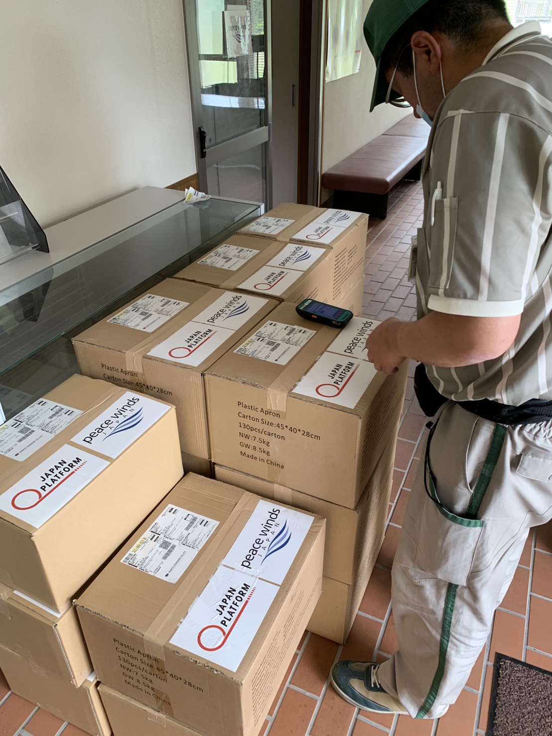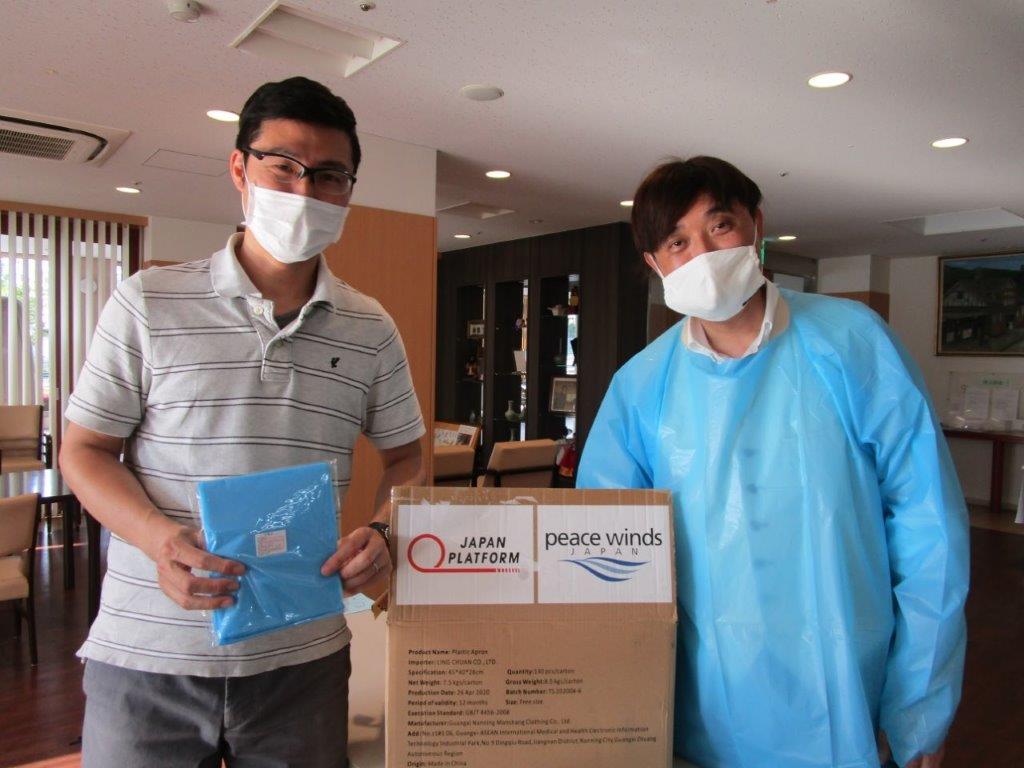 ピースウィンズ・ジャパン(PWJ)は、4月末から5月中旬にかけてマスク無償提供を行った東京都内約500の高齢者福祉施設の中で、特にビニールガウンの不足が深刻と判断された特別養護老人ホーム17施設へ、一施設当たり100枚のビニールガウンを追加提供しました。