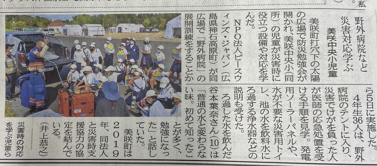 空飛ぶ捜索医療団は、協定先の岡山県美咲町にて、10月の定期訓練と小学生への防災勉強会を行い、その様子が山陽新聞に掲載されました。